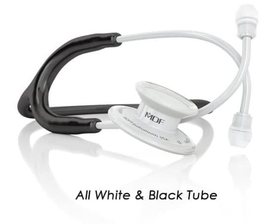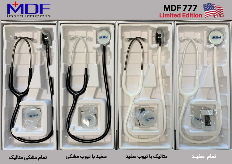 گوشی پزشکی دو طرفه دولوکس MDF مدل 777 رنگ تمام مشکی متالیک و سفید