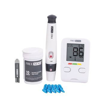 دستگاه تست قند خون فریسنس مدل TAG به همراه قلم و 10 عدد سوزن و 10 عدد نوار تست قند خون
