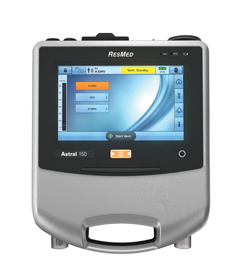 ونتیلاتور Resmed مدل Astral 150 دستگاهی مشهور و با کیفیت است که ساخت کشور آمریکا بوده و می تواند به صورت هوشمندانه عمل دم و بازدم را به صورت مصنوعی برای بیمار انجام بدهد، این ونتیلاتور رزمد آسترال 150 پرتابل یا همان قابل حمل بوده و می توان از آن در منازل و یا جابجایی های کوتاه مدت در آمبولانس، اورژانس و یا دیگر مراکز درمانی استفاده کرد.