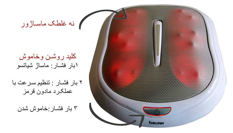 ماساژور پا بیورر FM60 محصول کشور آلمان می باشد. ماساژ شیاتسو ماساژی قدرتمند و موثر است که از آسیا سرچشمه می گیرد و شامل ماساژ فشاری تسکین دهنده و آرامش بخش با انگشتان، شست ها یا کف دست است. این ماساژور یک محصول با استفاده راحت یک وسیله ی کاربردی جهت ماساژ و رفع خستگی پا می باشد. این محصول با ماساژ لرزشی باعث خون رسانی عمیق به پاها و رفع خستگی روزانه می شود. این ماساژور دارای دو سرعت قابل تنظیم و گرمای تسکین دهنده است که ماساژی با کیفیت بالا را برای مصرف کنندگان فراهم می کند. یکی دیگر از ویژگی های این محصول امکان تنظیم شخصی زاویه شیب با پا با تنظیم بلندی می باشد.