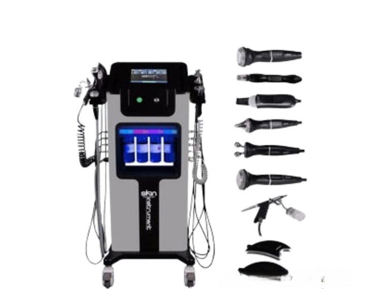 ۱۱ دسته (هندپیس) تخصصی شامل: (میکرودرم ابریژن - چکش سرد و گرم- التراسوند صورت و دور چشم -آر اف RF چشم و صورت-اسکرابر اولتراسونیک -اسپری اکسیژن - میکروکارنت-گوی مغناطیسی-دسته حبابساز اکسیژن (Hydrodermabrasion) - ماسک LED با ۷ رنگ درمانی)