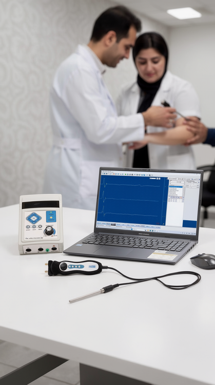دستگاه نوار عصب و عضله مدل قابل حمل emg همراه با لب تاپ دسته دو