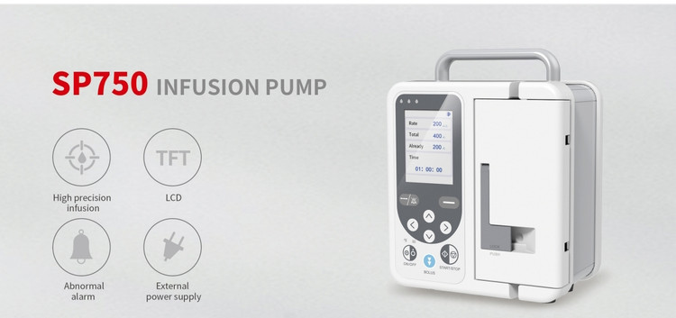 ویژگیها: مدل SP750 دارای رابط کاربری آسان و ویژگیهای پیشرفتهای مانند آلارمهای قابل تنظیم برای اطمینان از تجویز ایمن دارو است.