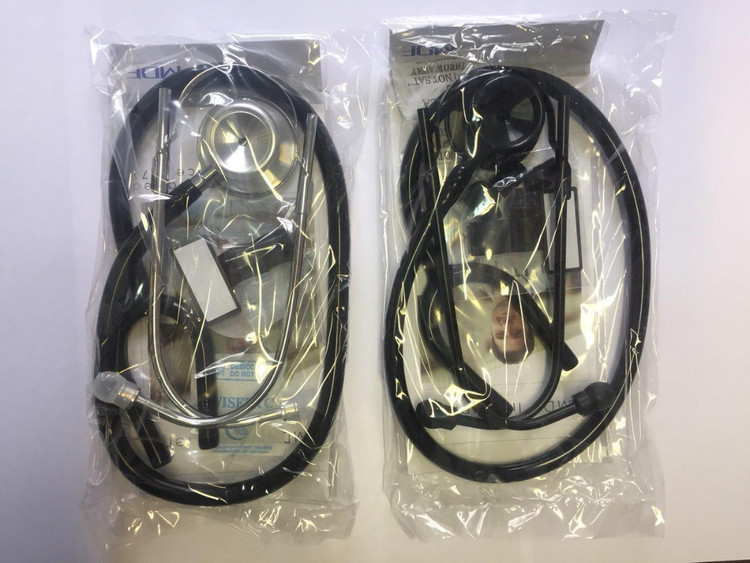 - بسته گوشی شامل ست گوشگیر، حلقه دور بل و صفحه و همچنین تگ نام پزشک